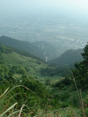 下 面是S形曲线的另一次应用。照片是在登山及顶后拍摄的,可以看见蜿蜒的山路。现在想要提高对比度。通过RGB色阶直方图可以看到像素亮度已经布满全色阶范围,那么此时如果采用合并高光或合并暗调的方法,会造成过于强烈的对比,且会损失很多高光(图片上部的田野)及暗调(下部的树木阴影)的细节。